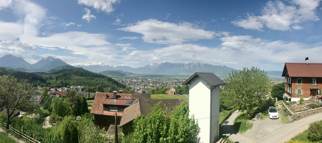 Unser Ferienhaus „Rosinas Dreiländerblick“ liegt malerisch im Herzen Vorarlbergs, in der Gemeinde Zwischenwasser im Ortsteil Batschuns.